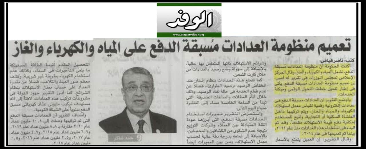 تعميم منظومة العدادات مسبقة الدفع على المياه والكهرباء والغاز