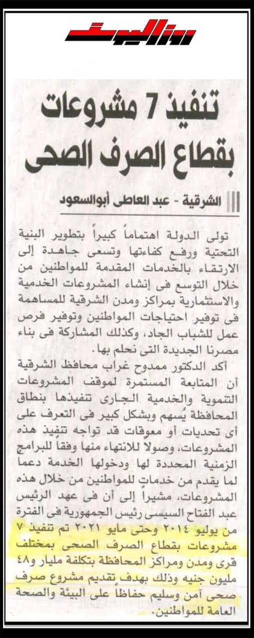 تنفيذ مشروعات بقطاع الصرف الصحي
