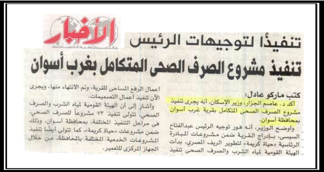 تنفيذ مشروع الصرف الصحي المتكامل بغرب اسوان