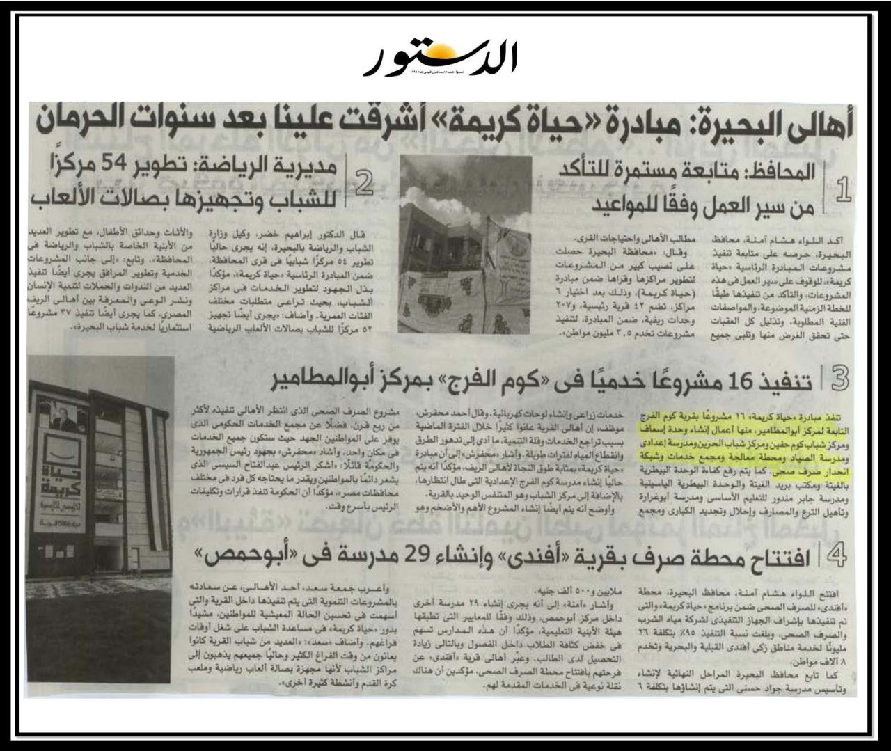 تنفيذ 16 مشروعا خدميا في كوم الفرج بمركز ابو المطامير