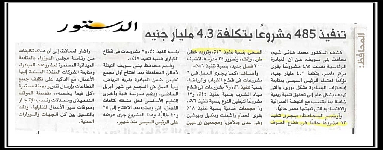 تنفيذ 485 مشروعا بتكلفة 4.3 مليار جنية