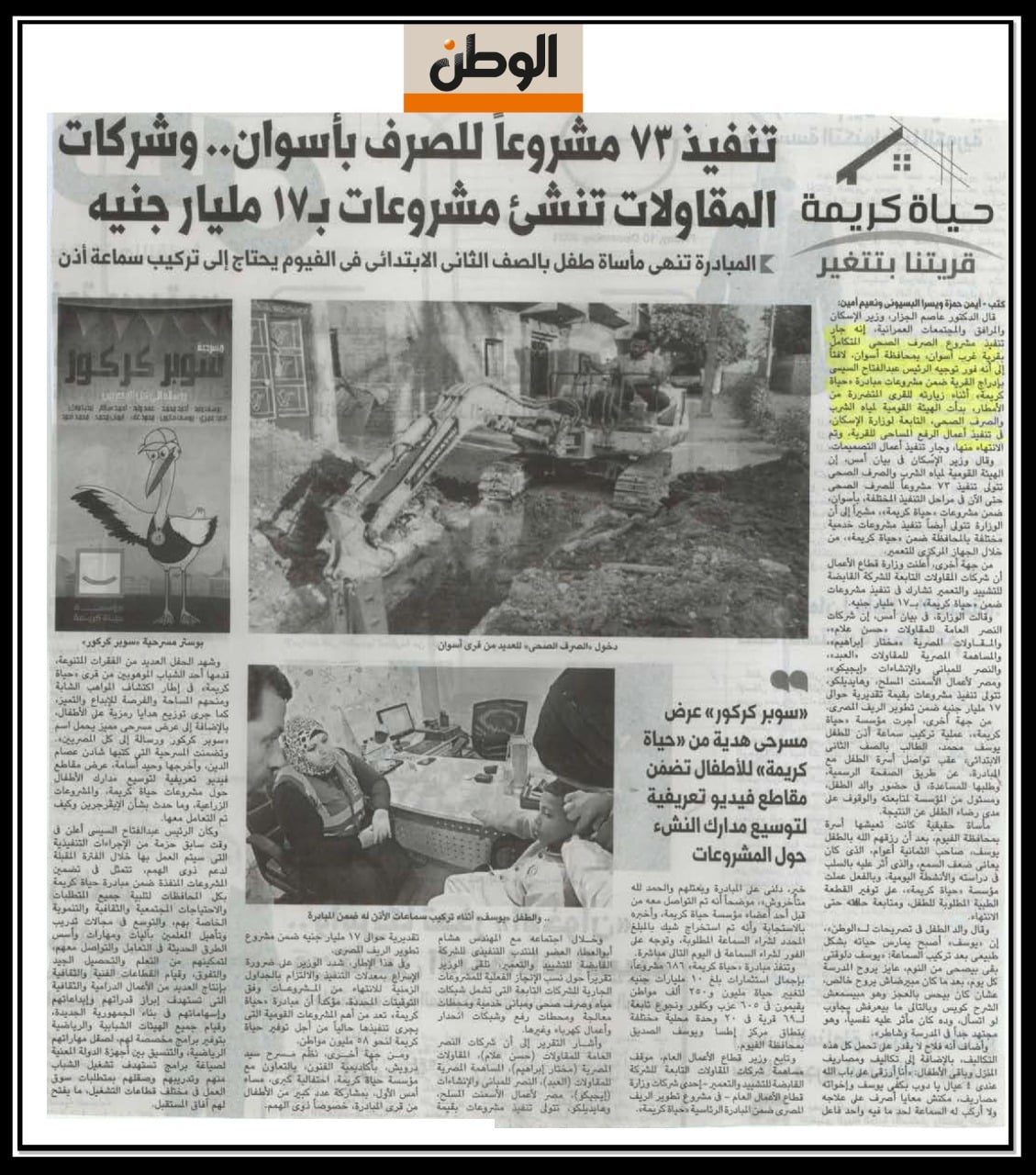 تنفيذ 73 مشروعا للصرف باسوان وشركات المقاولات تنشئ مشروعات ب 17 مليار جنية