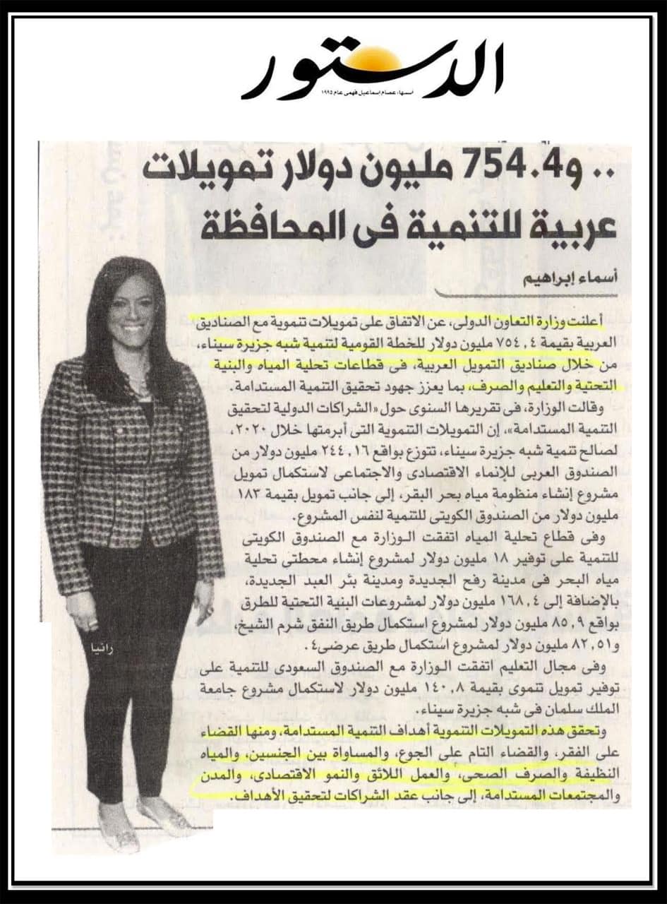 تنمية شبة جزيرة سيناء …754.4 مليون دولار تمويلات عربية للتنمية في المحافظة .