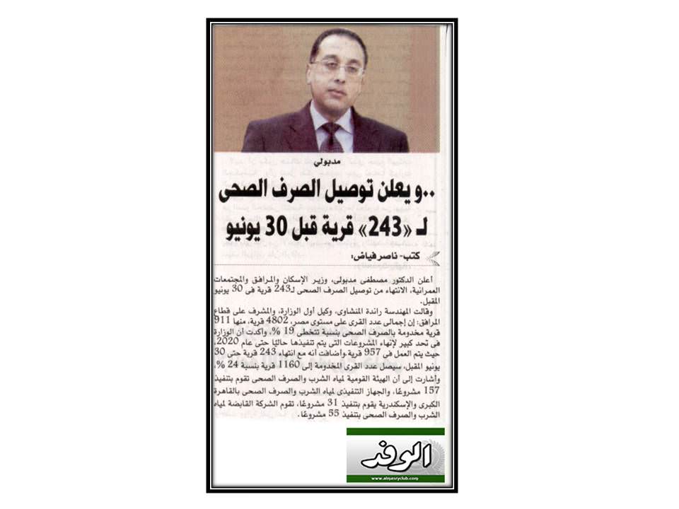 توصيل الصرف الصحي لــ ( 243 ) قرية قبل 30 يونيو .