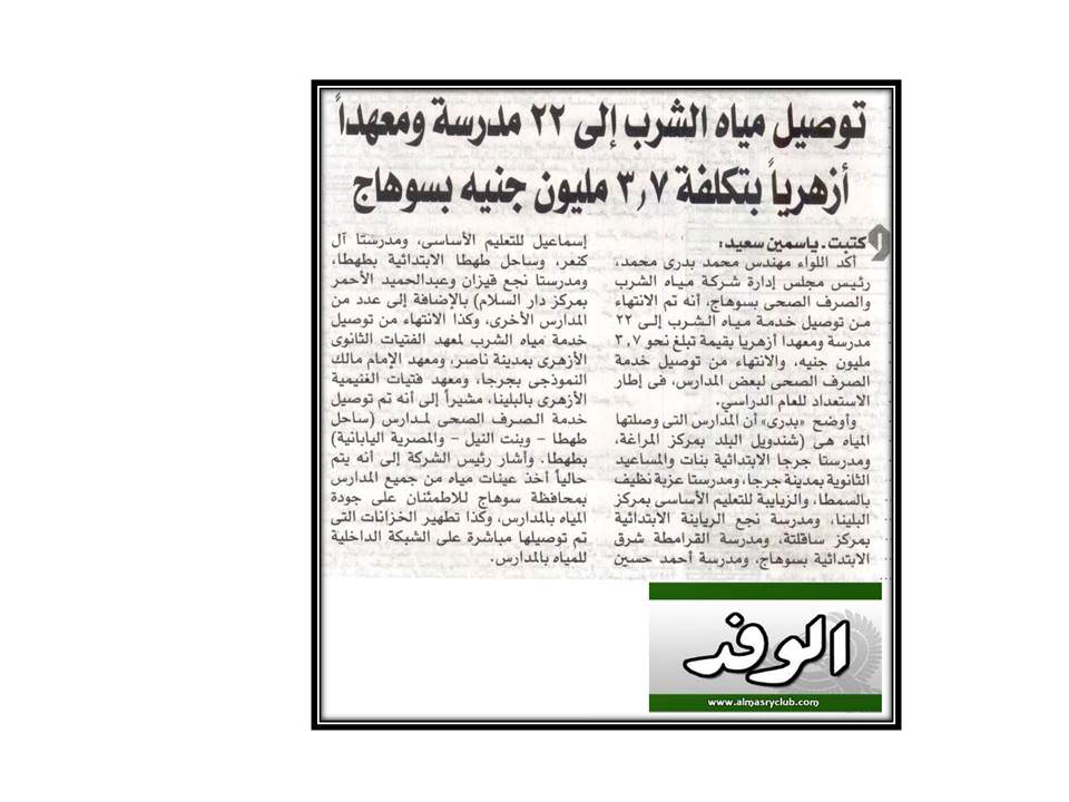 توصيل مياه الشرب إلي 22 مدرسة ومعهداً أزهرياً بتكلفة 3.7 مليون جنية بسوهاج .