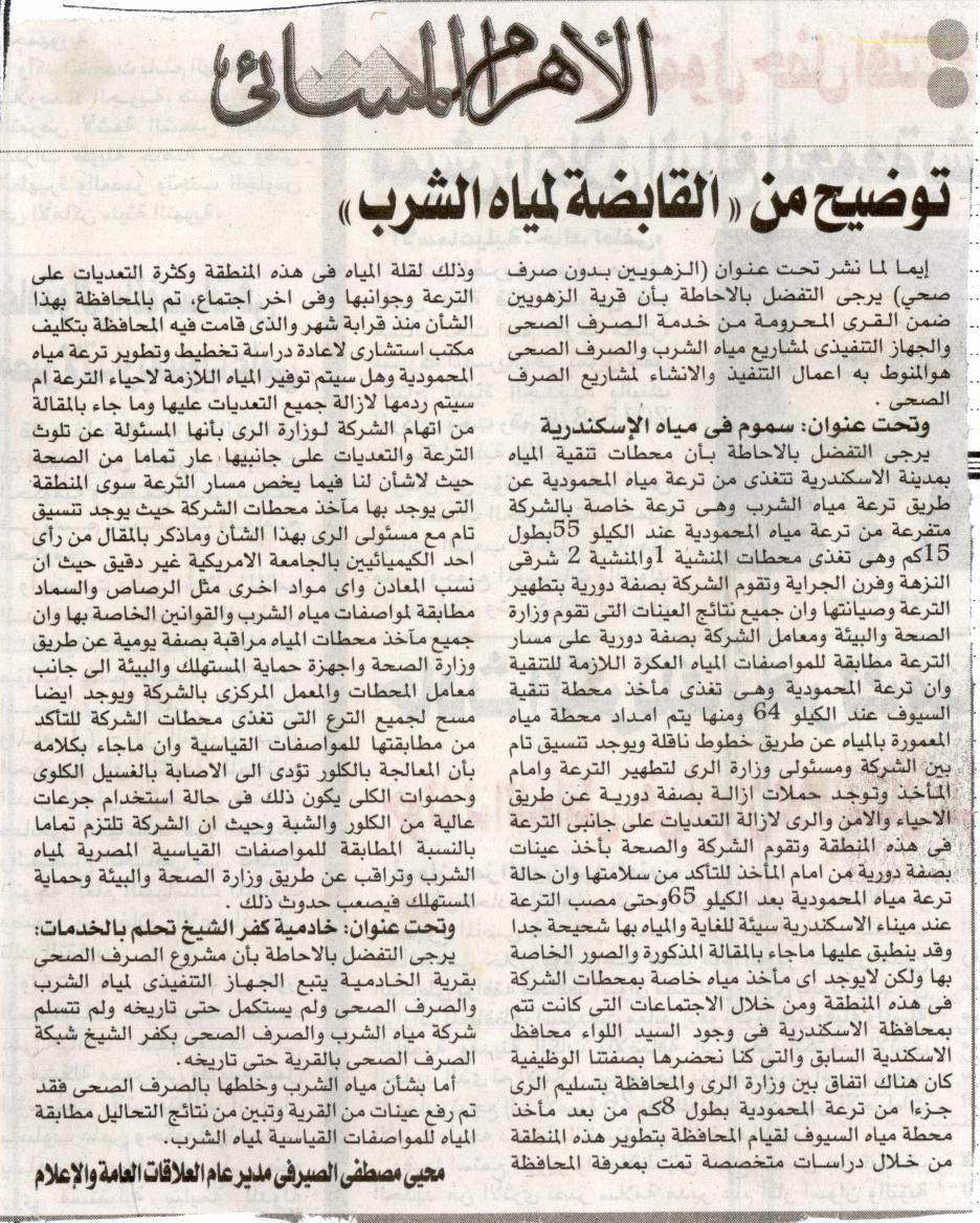 توضيح من “القابضة لمياه الشرب” …16-6-2015