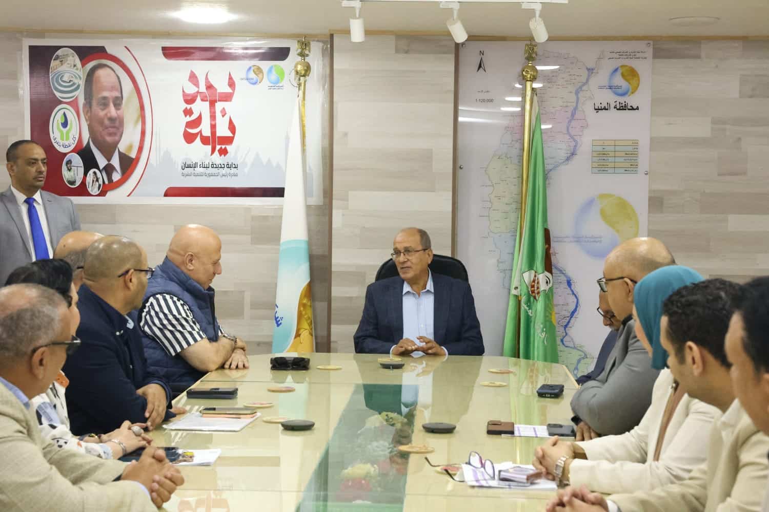 استهل المهندس أحمد جابر جولاته بمحافظة المنيا، حيث عقد اجتماعًا مع المهندس حسن يحيى حسن، رئيس شركة مياه الشرب والصرف الصحي بالمنيا، بحضور الدكتور صلاح بيومي نائب رئيس الشركة القابضة، والمهندس محمد جلال مستشار قطاع المشروعات، لمتابعة الموقف التنفيذي لمشروعات المبادرة الرئاسية “حياة كريمة”.