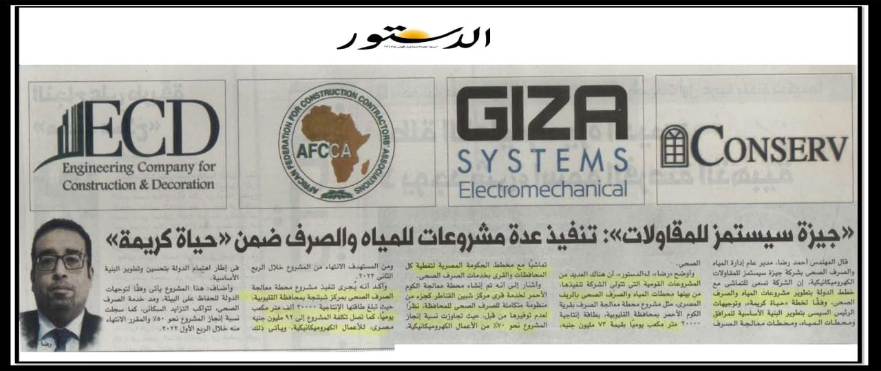جيزة سيستمز للمقاولات: تنفيذ عدة مشروعات للمياه والصرف الصحي ضمن حياة كريمة