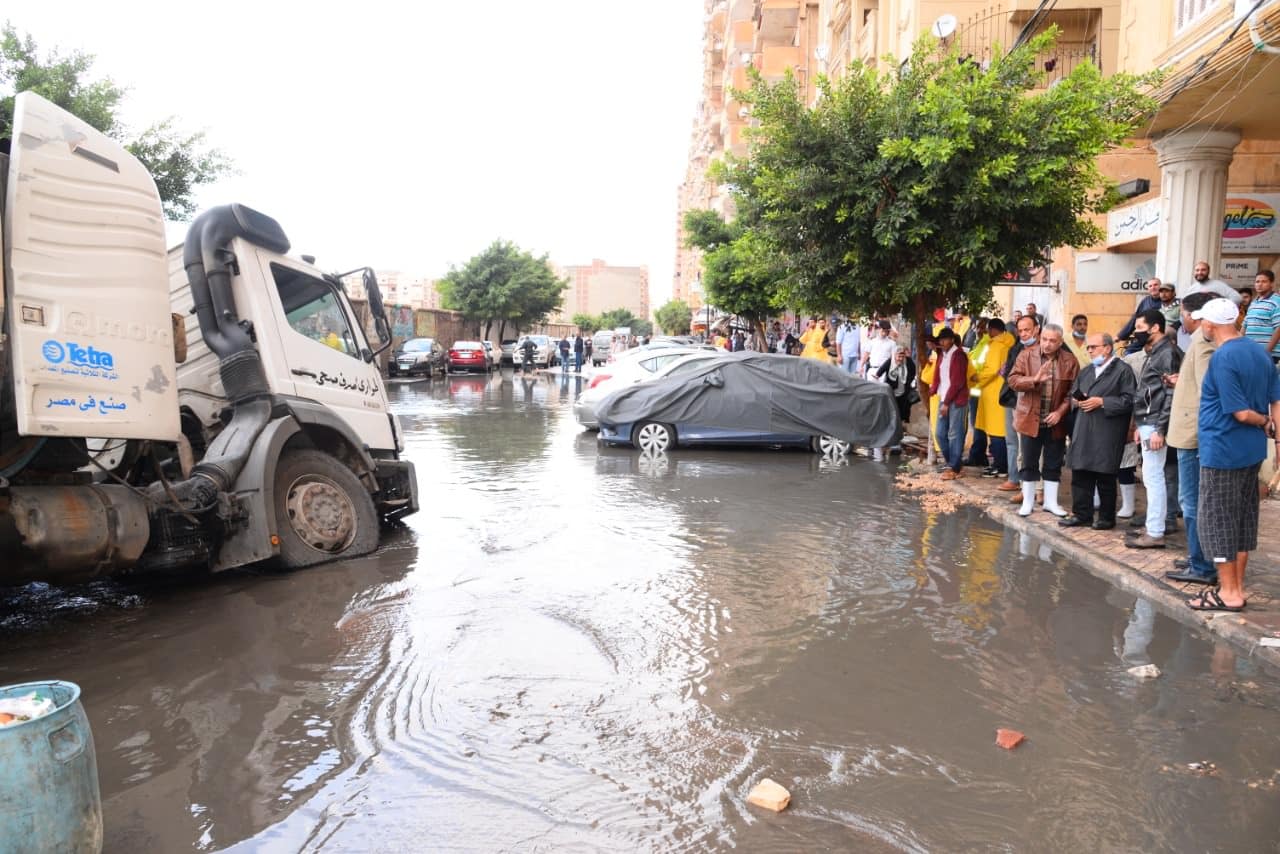وأعلنت شركة الصرف الصحى بالإسكندرية أنه تم الدفع ببدلات لرفع المياه من بعض الجراجات مع قيام سيارات الشفط والمعدات بسحب المياه من أماكن التجمعات، وجارى أعمال إصلاح الخط حاليا.