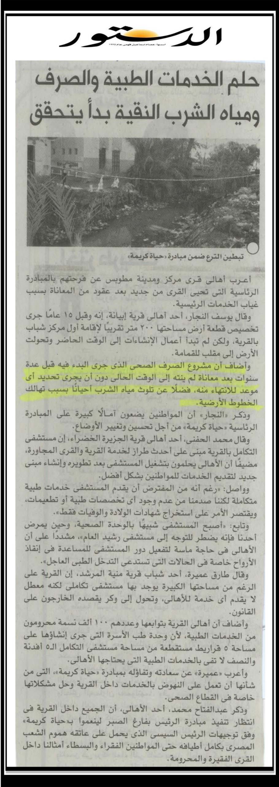 حلم الخدمات الطبية والصرف ومياه الشرب النقية بدأ يتحقق