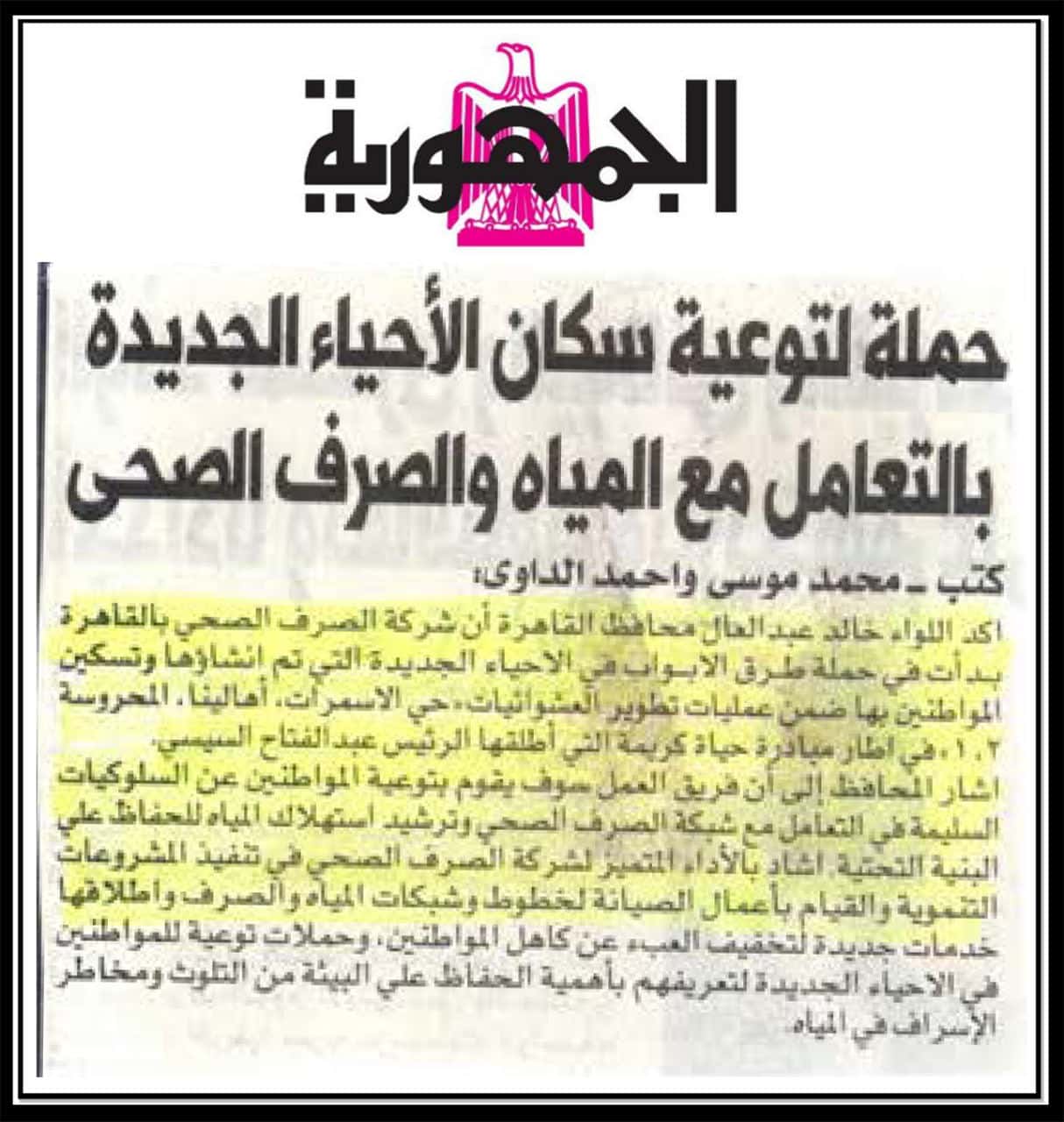 حملة لتوعية سكان الاحياء الجديدة بالتعامل مع المياه والصرف الصحي