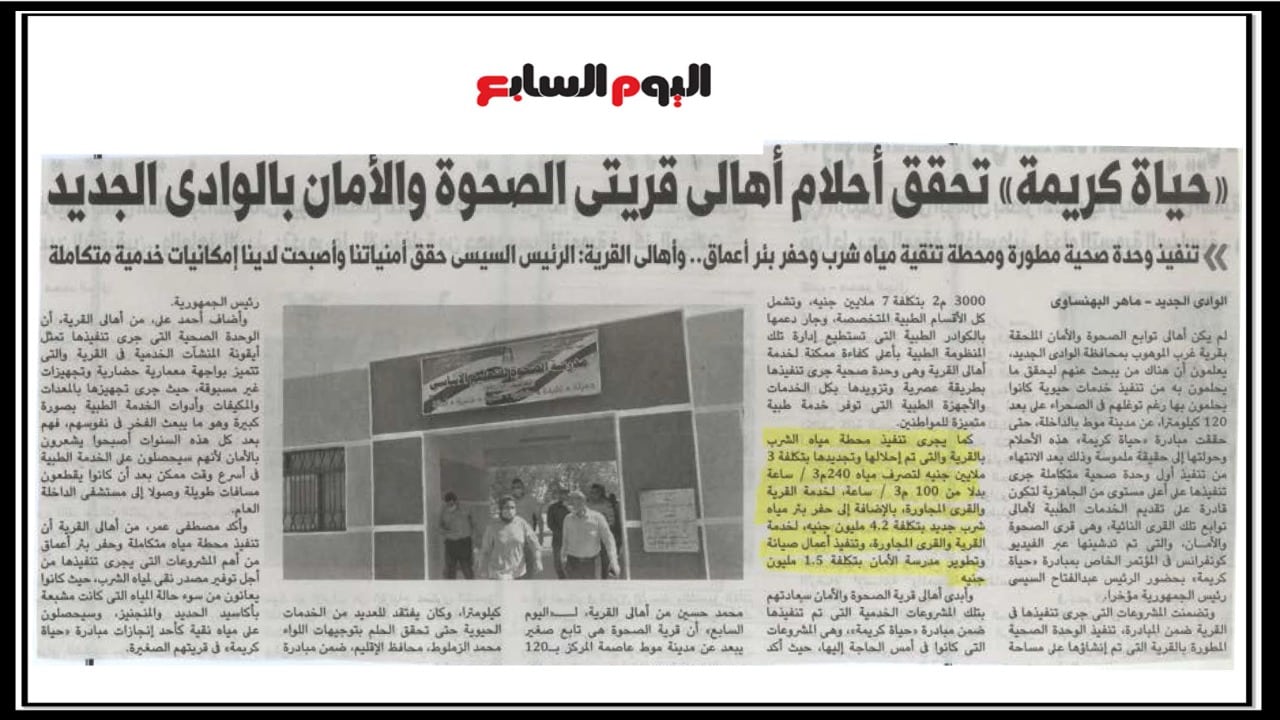 حياة كريمة تحقق احلام اهالي قريتي الصحوة والامان بالوادي الجديد