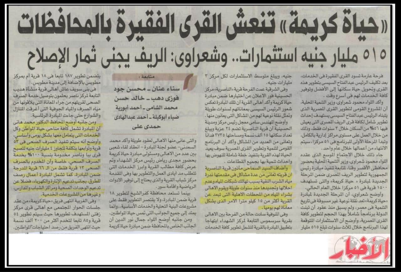 حياة كريمة تنعش القرى الفقيرة بالمحافظات .