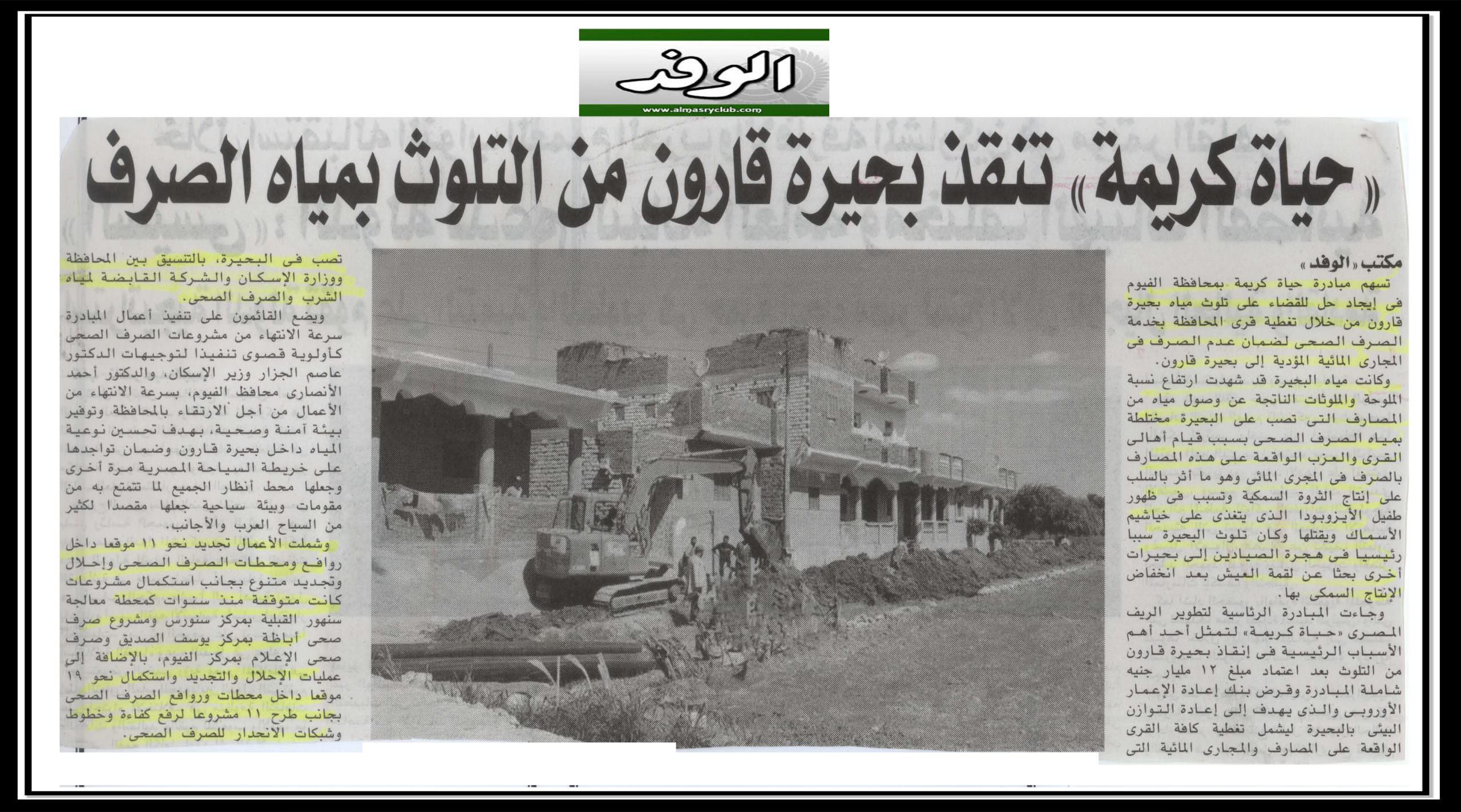حياة كريمة تنقذ بحيرة قاورن من التلوث بمياه الصرف