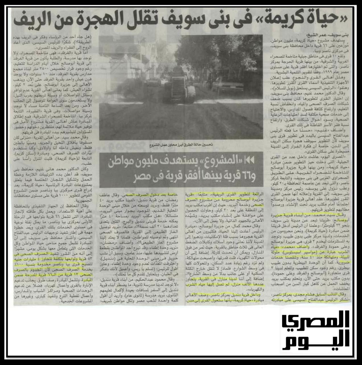 حياة كريمة … في بني سويف تقلل الهجرة من الريف .