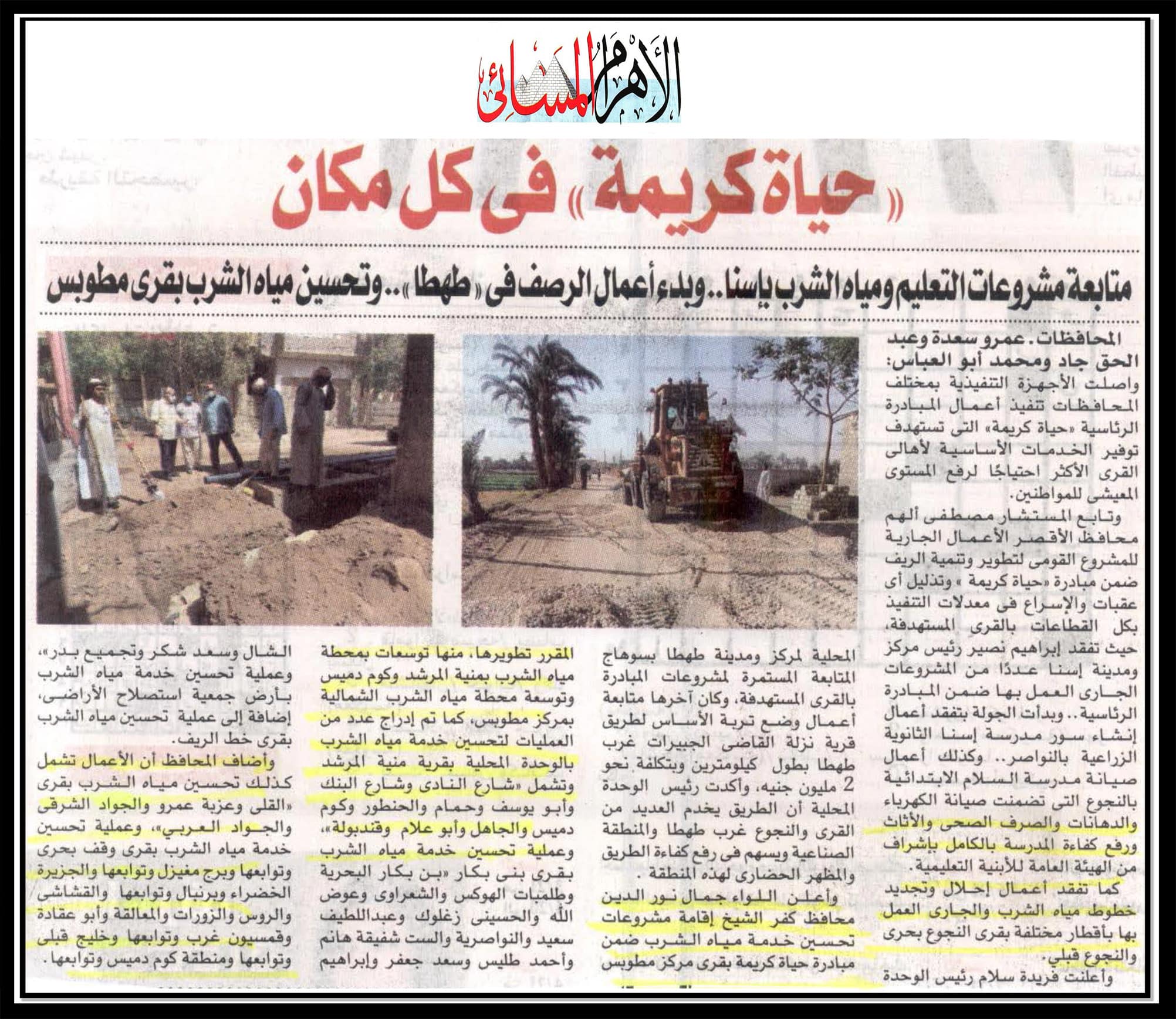 رئيس القابضة لمياه الشرب يتفقد مشروعات “حياة كريمة” بالفيوم ويتابع معدلات التنفيذ بمحطتي قحافة والعزب الجديدة