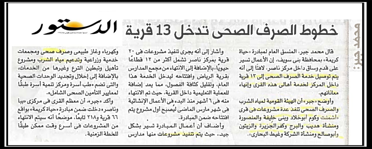 خطوط الصرف الصحي تدخل 13 قرية