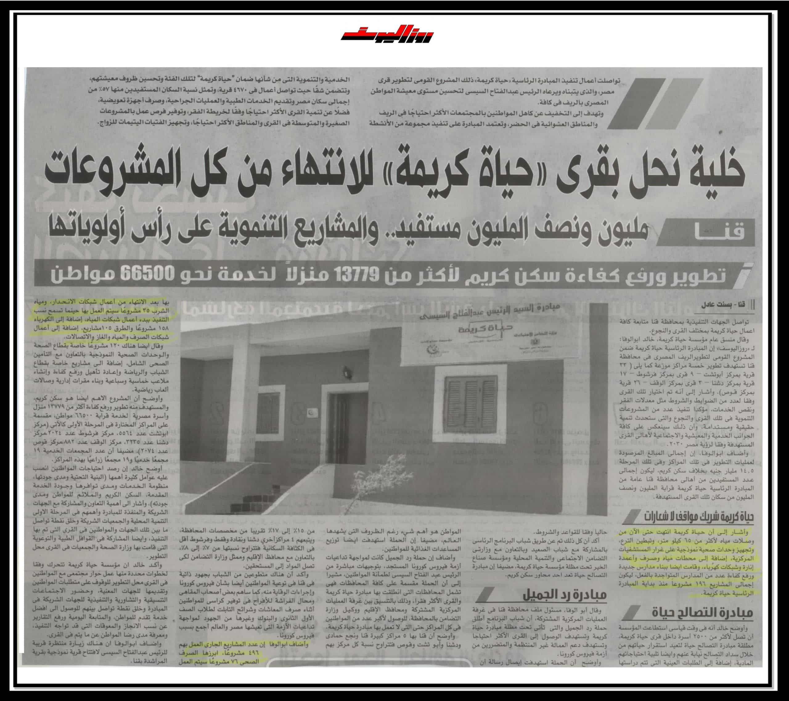 خلية نحل بقرى حياة كريمة للانتهاء من كل المشروعات