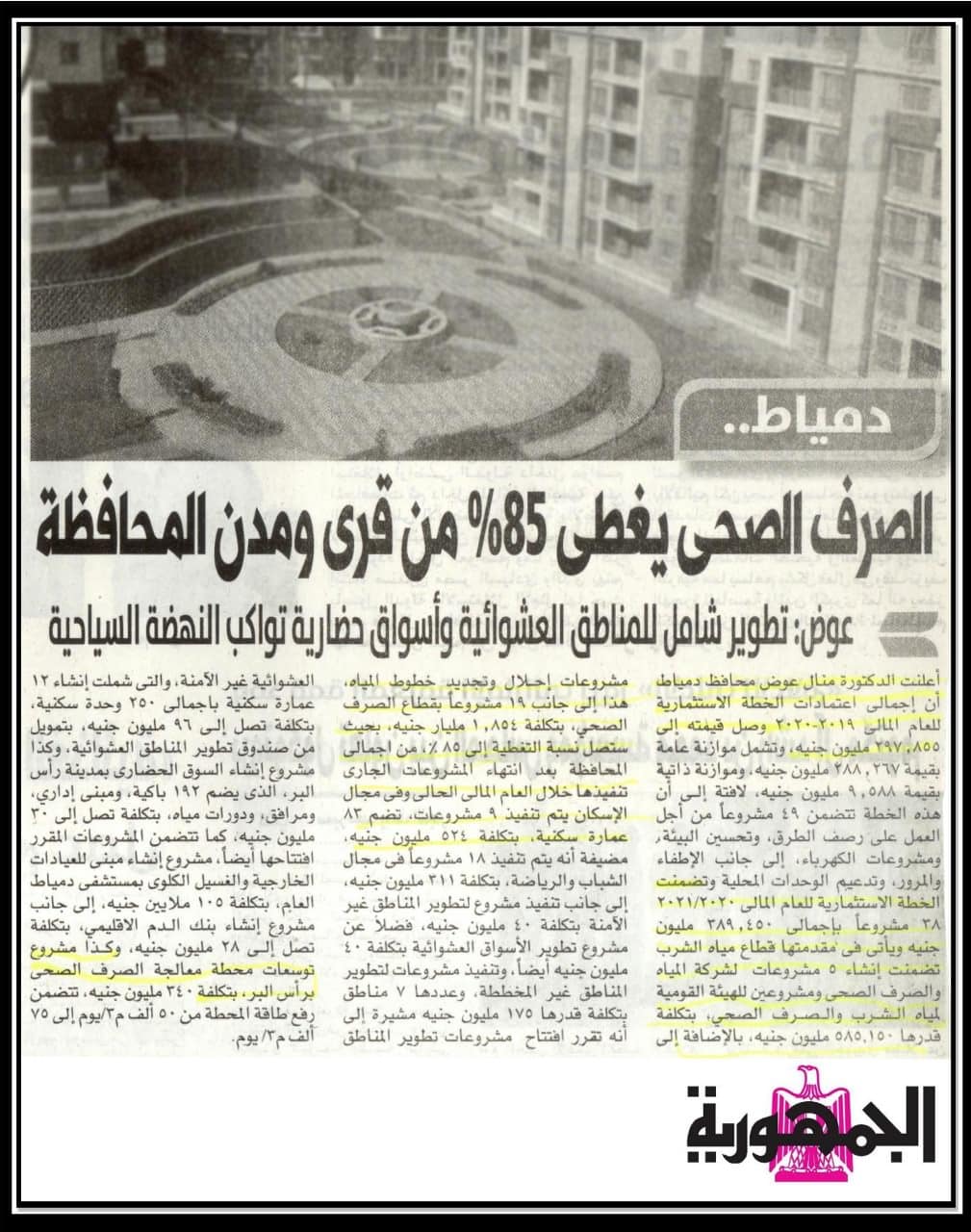 دمياط: الصرف الصحي يغطي 85% من قرى ومدن المحافظة .