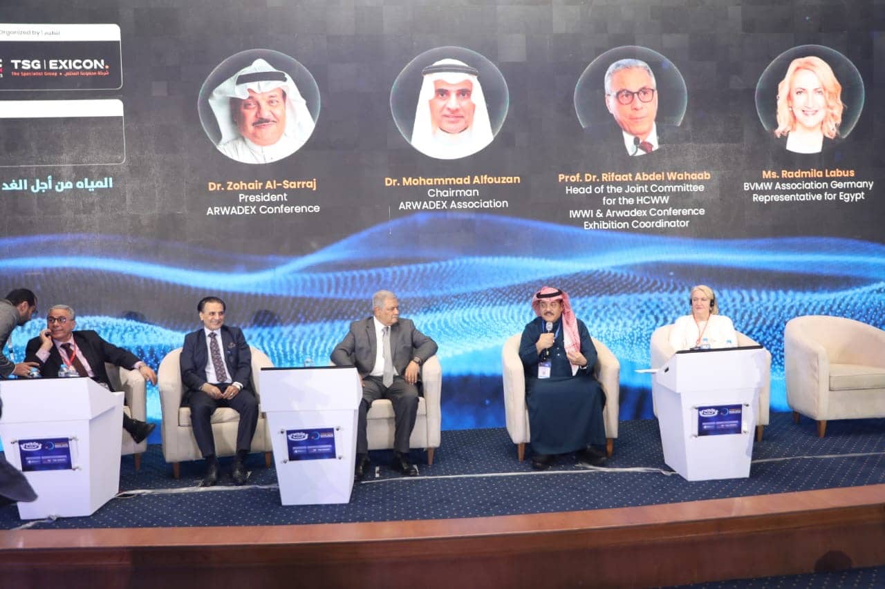 تحدث خلال الجلسة كل من الدكتور زهير السراج، رئيس مؤتمر “ARWADEX”، والدكتور محمد الفوزان، رئيس جمعية “ARWADEX”، بالإضافة إلى الأستاذ الدكتور رفعت عبد الوهاب، رئيس اللجنة المشتركة ومنسق المؤتمر والمعرض، والسيدة ردميلا لابوس، ممثلة جمعية الأعمال الألمانية BVMW في مصر.