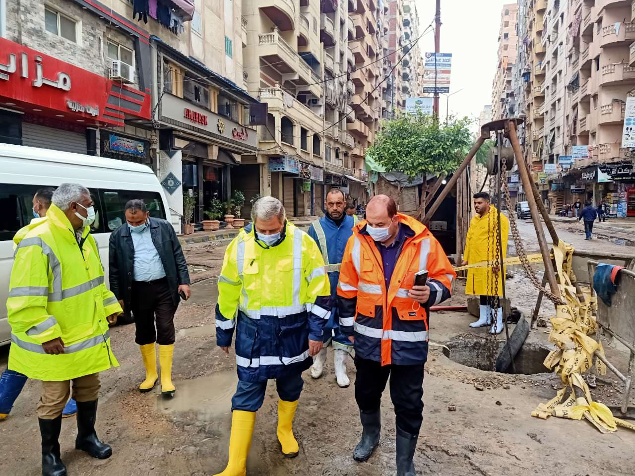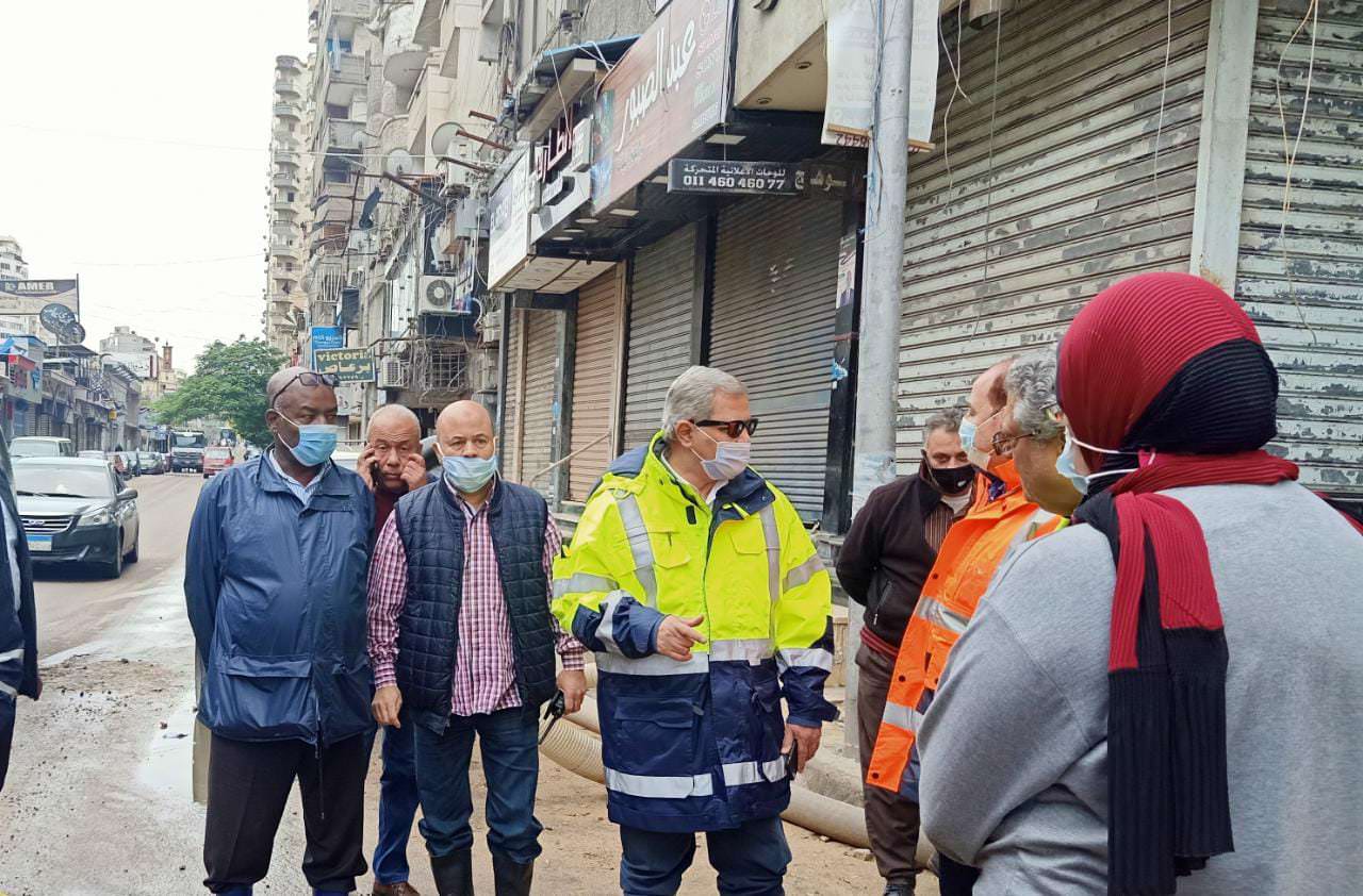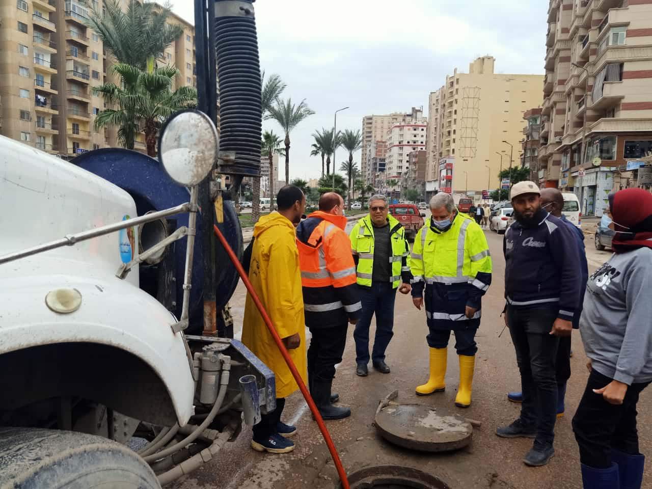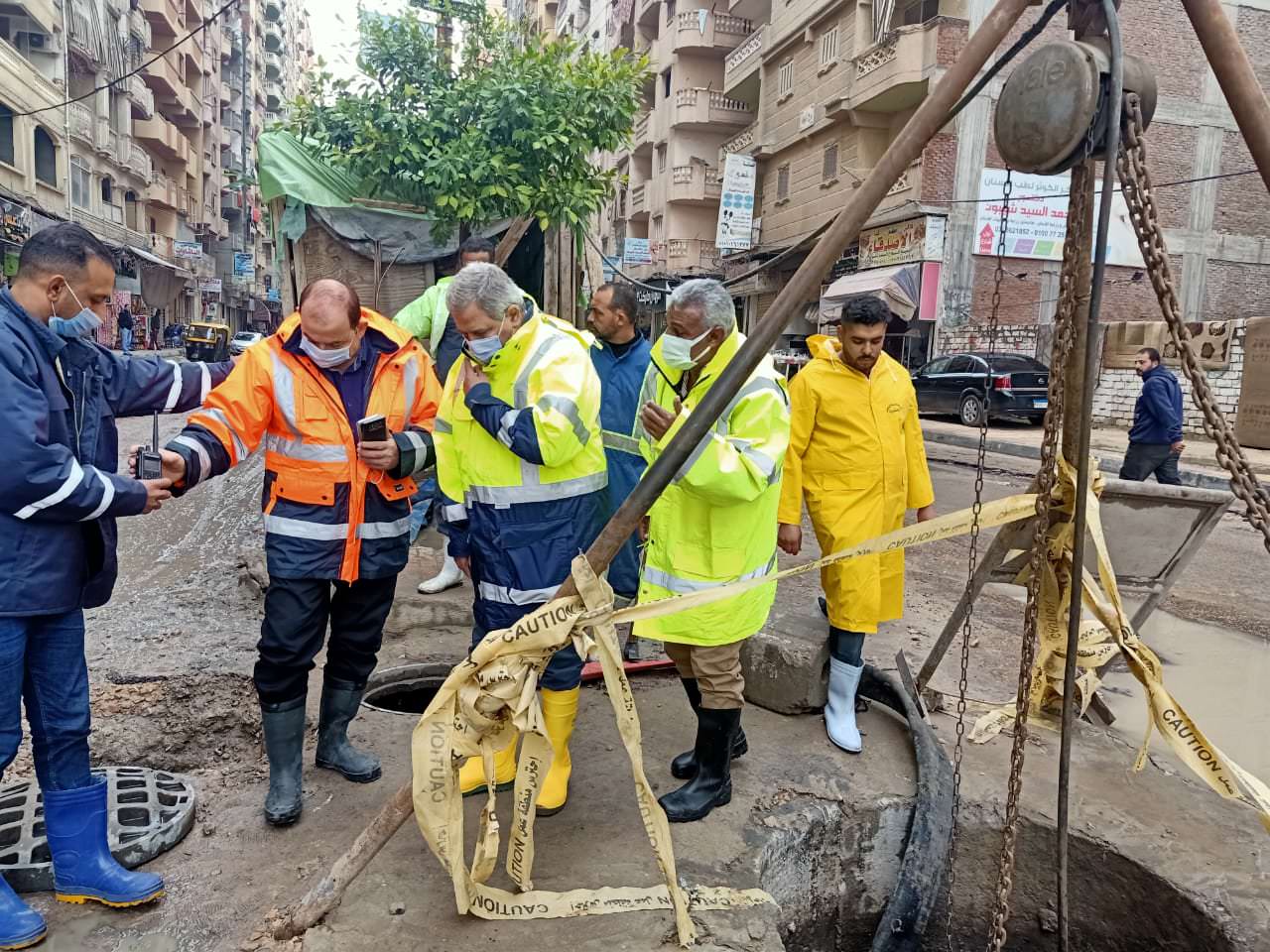 رئيس الشركة القابضة يتفقد المناطق الساخنة بالإسكندرية لمتابعة أعمال سحب المياه