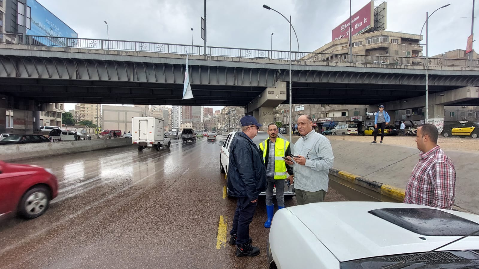 وشملت جولة اللواء محمود نافع، تمركزات السيارات بمناطق محور المحمودية، حيث تزايدت شدة الأمطار على طريق محور المحمودية.