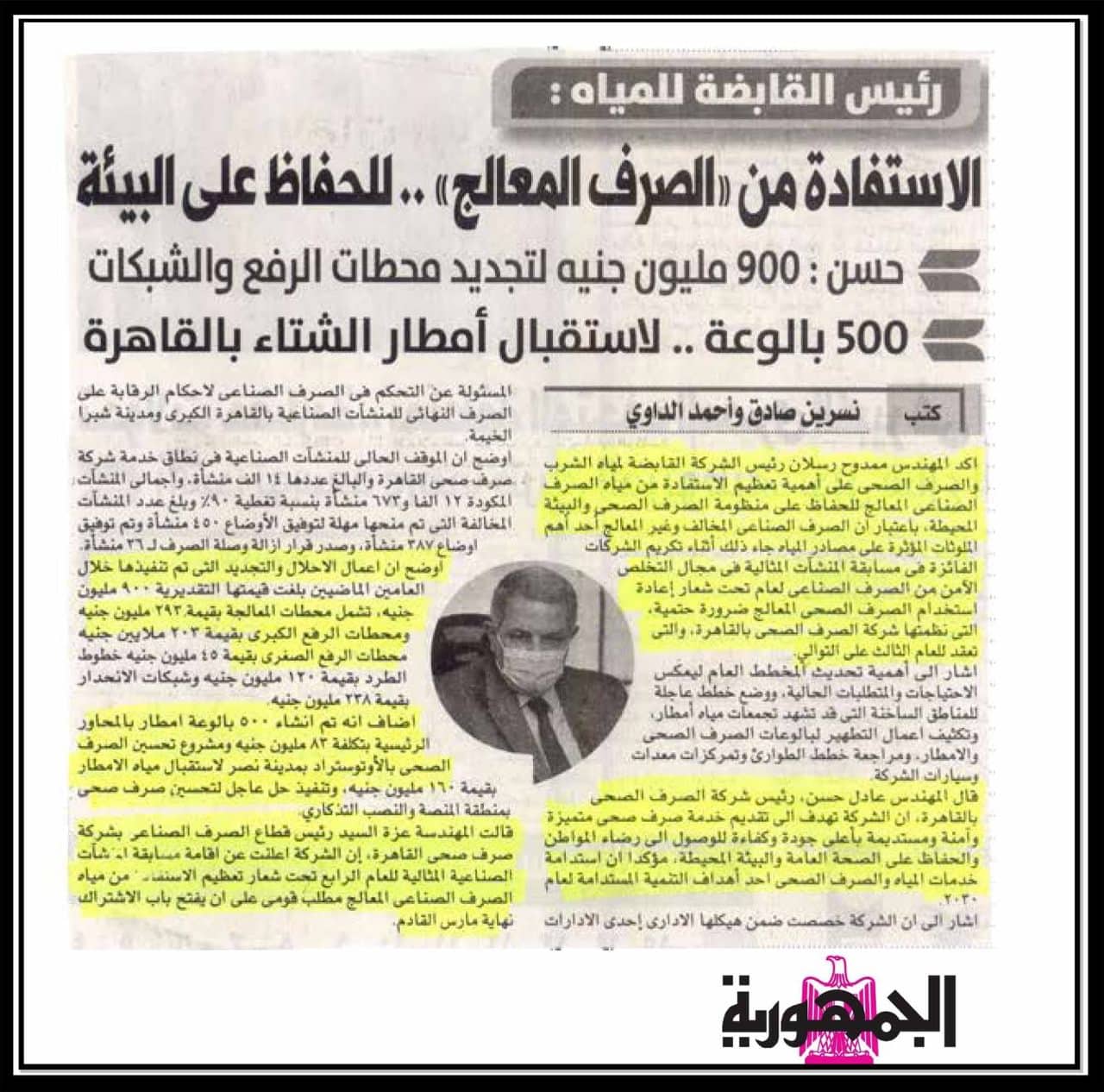رئيس القابضة للمياه: الاستفادة من الصرف المعالج ..للحفاظ على البيئة .