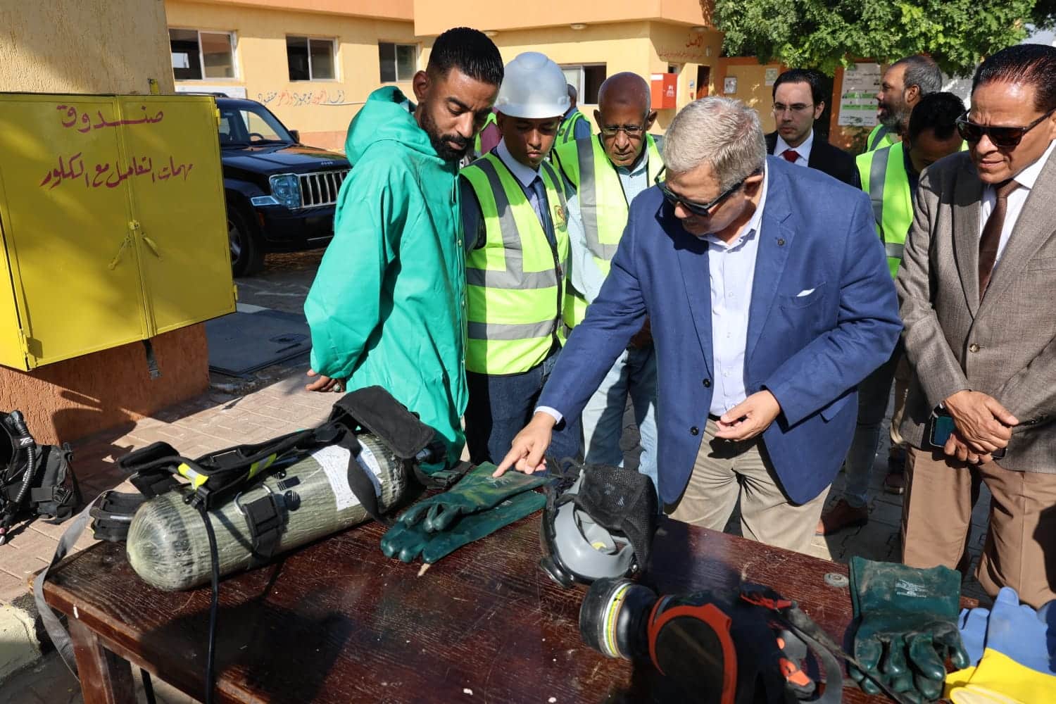 كما تفقد المهندس ممدوح رسلان، مأخذ المحطة، لمتابعة إجراءات الصيانة والالتزام بخطط التطهير الشهرية والسنوية، كما تفقد حاويات الترشيح الفائق بالمحطة، وعنبر الطلمبات، المعمل، وعنبر الكلور، مشددا على ضرورة الالتزام بإجراءات التشغيل القياسية ونظافة المحطة، والالتزام بإجراءات السلامة والصحة المهنية للتعامل مع اى مخاطر محتملة.