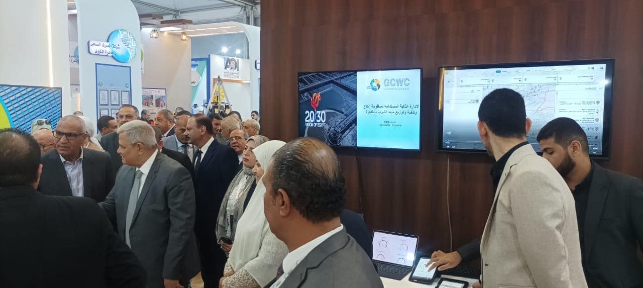 تفقد السيد المهندس ممدوح رسلان رئيس مجلس الإدارة والعضو المنتدب للشركة القابضة لمياه الشرب والصرف الصحى يرافقه السيد الدكتور صلاح بيومى والسيد اللواء عاصم شكر نواب رئيس مجلس إدارة الشركة القابضة والسيد المهندس مصطفى الشيمى رئيس مجلس إدارة شركة مياه الشرب بالقاهرة ومجموعة كبيرة من السادة رؤساء مجالس إدارات الشركات التابعة للشركة القابضة لمياه الشرب والصرف الصحى الجناح الخاص بشركة مياه الشرب القاهرة ، حيث يتضمن الجناح اقسام لعرض المنصة الرقمية الموحدة لشركة مياه الشرب بالقاهرة وكذلك تجربة الشركة فى استخدام الذكاء الاصطناعي فى مراقبة مناسيب مياه النيل امام مآخذ محطات انتاج مياه الشرب التابعة للشركة.