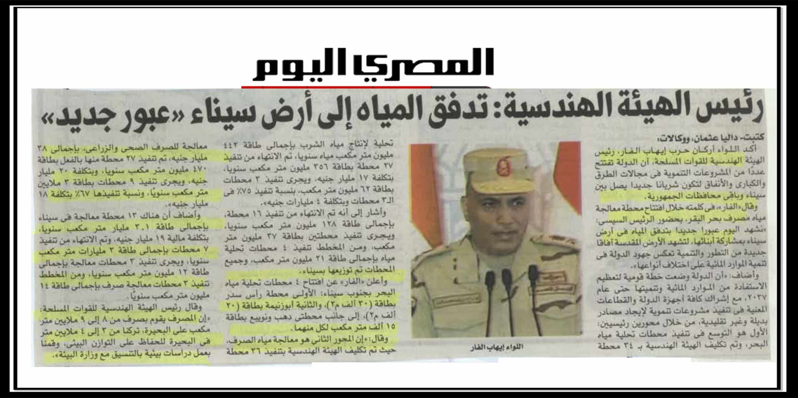رئيس الهيئة الهندسية: تدفق المياه الى ارض سيناء عبور جديد