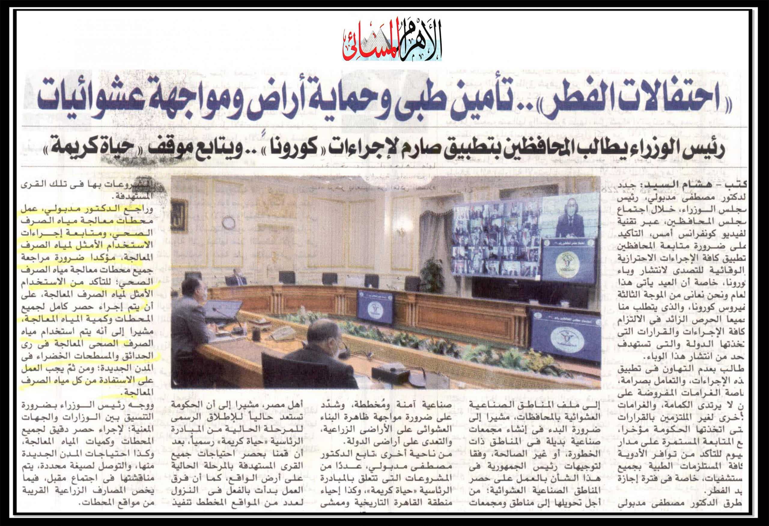 رئيس الوزراء يطالب المحافظين بتطبيق صارم لاجراءات كورونا..ويتابع موقف حياة كريمة