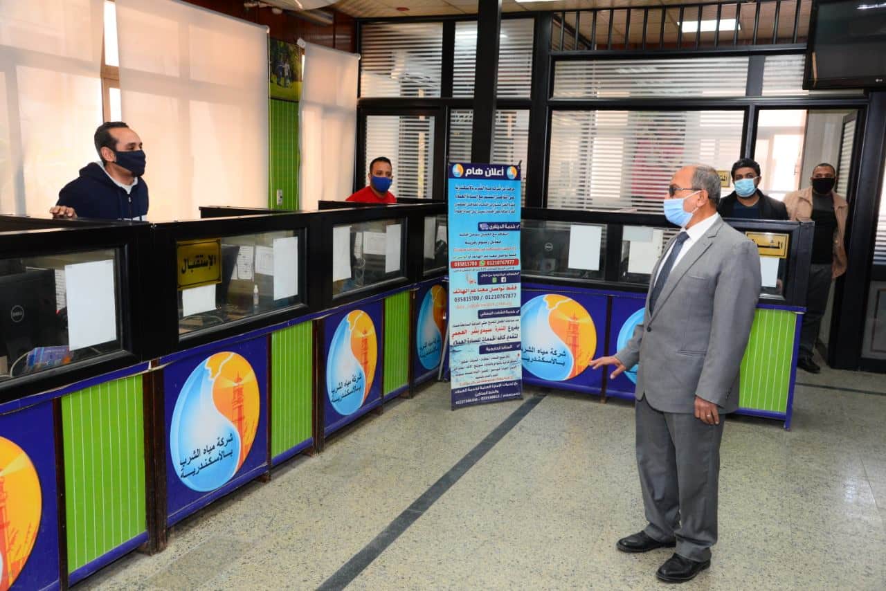 رئيس شركة مياه الاسكندرية يتابع سير العمل بفروع خدمة العملاء