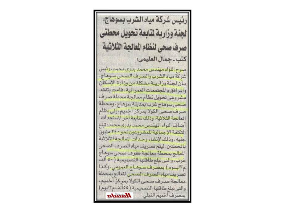 رئيس شركة مياه الشرب بسوهاج ..لجنة وزارية لمتابعة تحويل محطتي صرف صحي لنظام المعالجة الثلاثية
