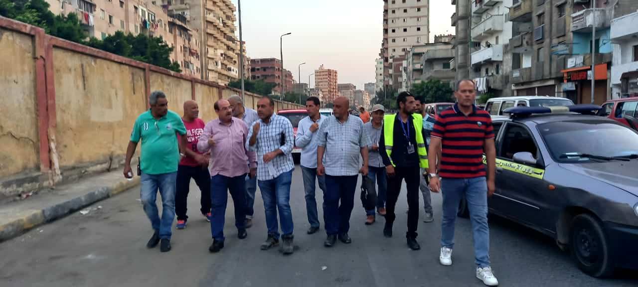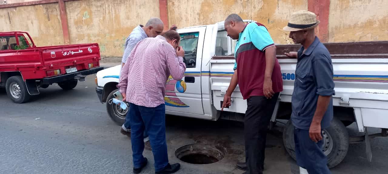 تابع اللواء محمود نافع رئيس شركة الصرف الصحى بالإسكندرية، أعمال إصلاح هبوط ارضي بمجمع انحدار شارع بورسعيد المعمورة البلد.