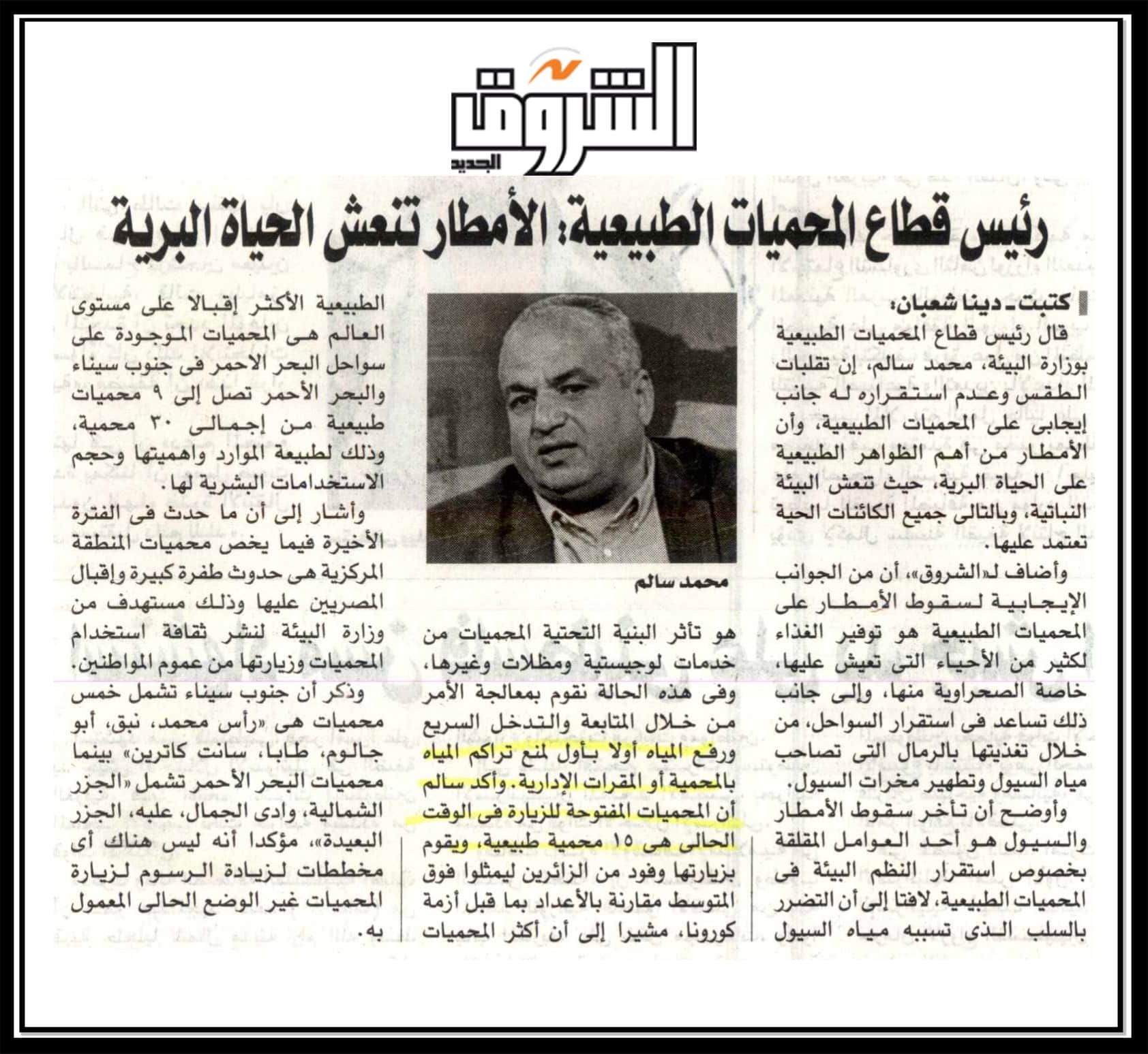 رئيس قطاع المحميات الطبيعية : الامطار تنعش الحياة البرية .