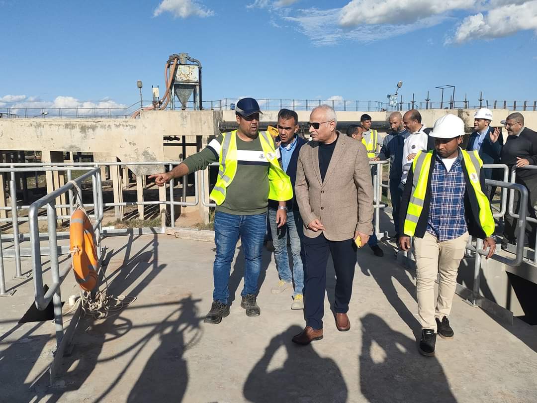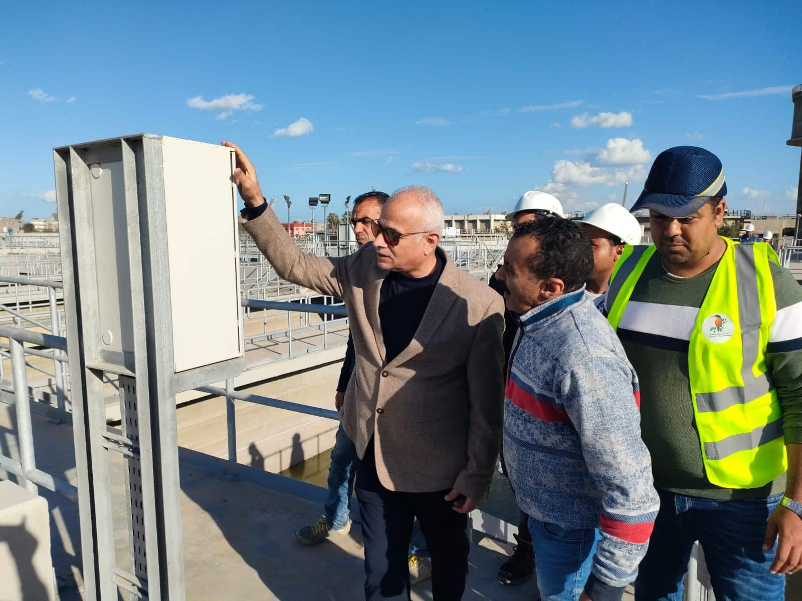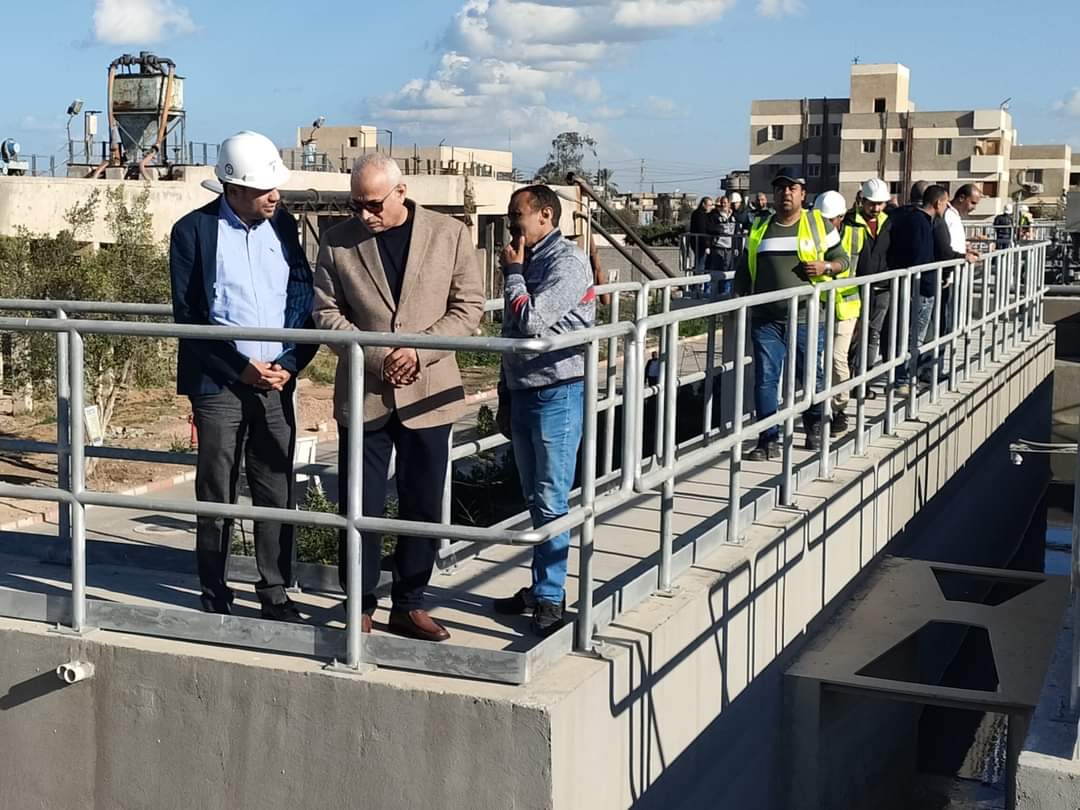 وتفقد، نشأت جميع منشأت المحطة من مبني المدخل والراسب الرملي و أحواض التهوية، ومتابعة فتح خطوط الروافع تدريجياً علي مدخل المحطة، واستمع الي شرح مفصل من مهندسي شركة ماتيتو المنفذة للمشروع عن جميع الاعمال التي تمت بالمحطة.