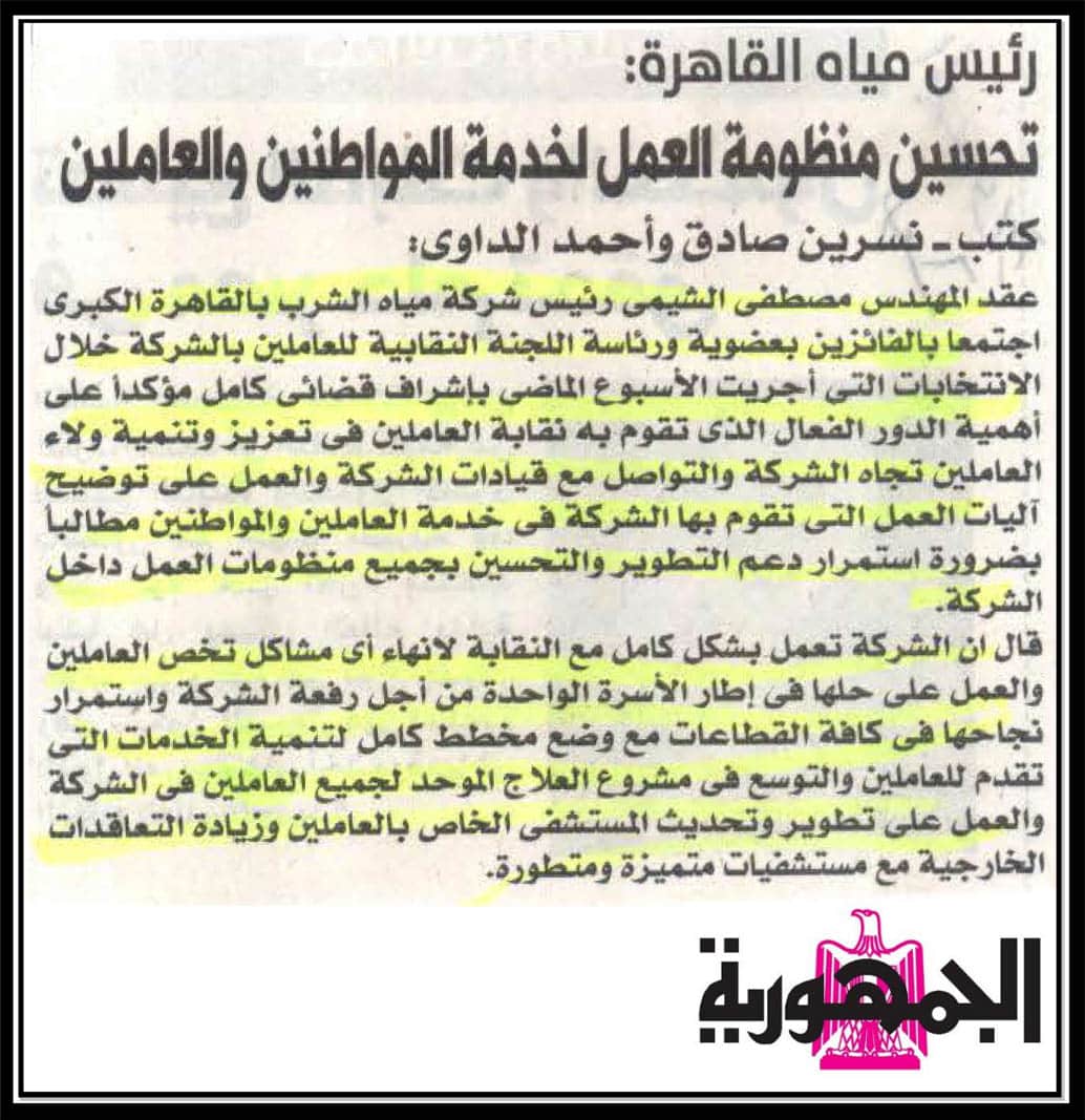 رئيس مياه القاهرة: تحسين منظومة العمل لخدمة المواطنين والعاملين .