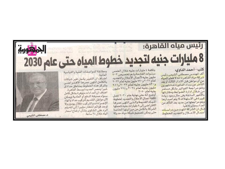 رئيس مياه القاهرة :8 مليارات جنية لتجديد خطوط المياه حتى عام 2030