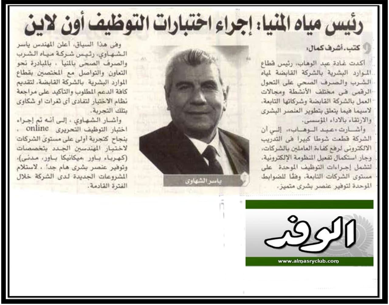 رئيس مياه المنيا : إجراء اختبارات التوظيف أون لاين .