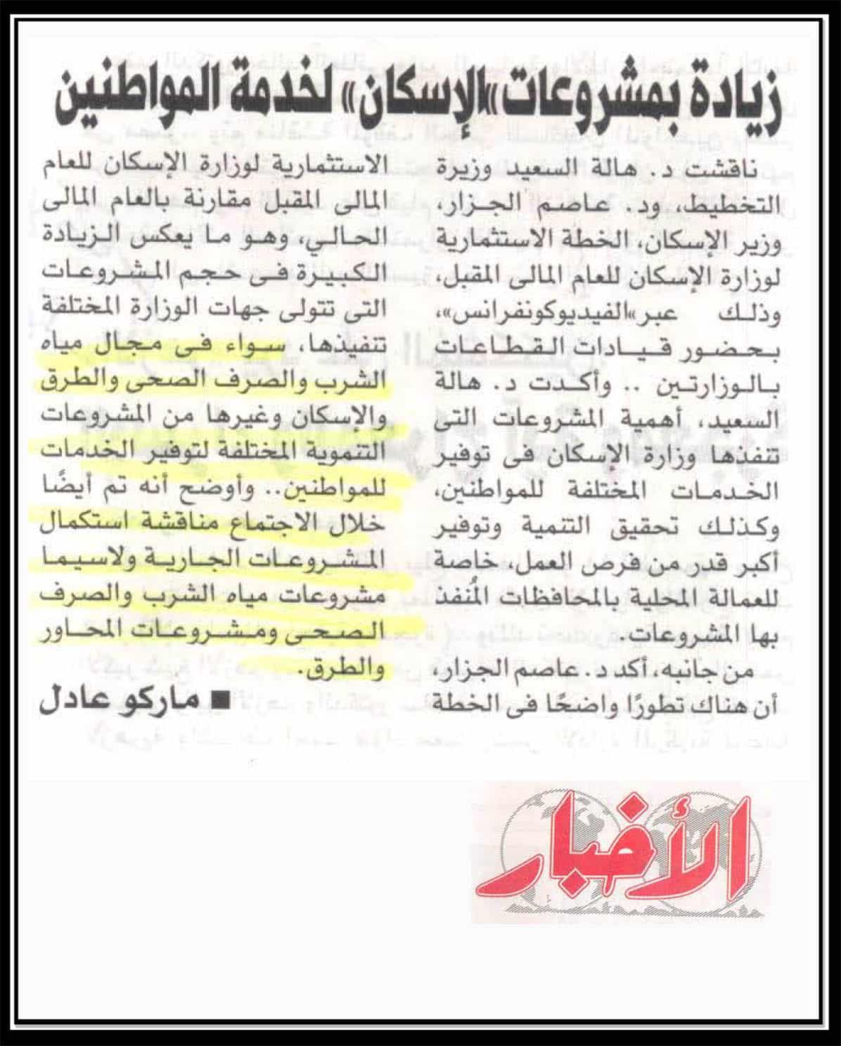 زيادة بمشروعات ” الاسكان ” لخدمة المواطنين .