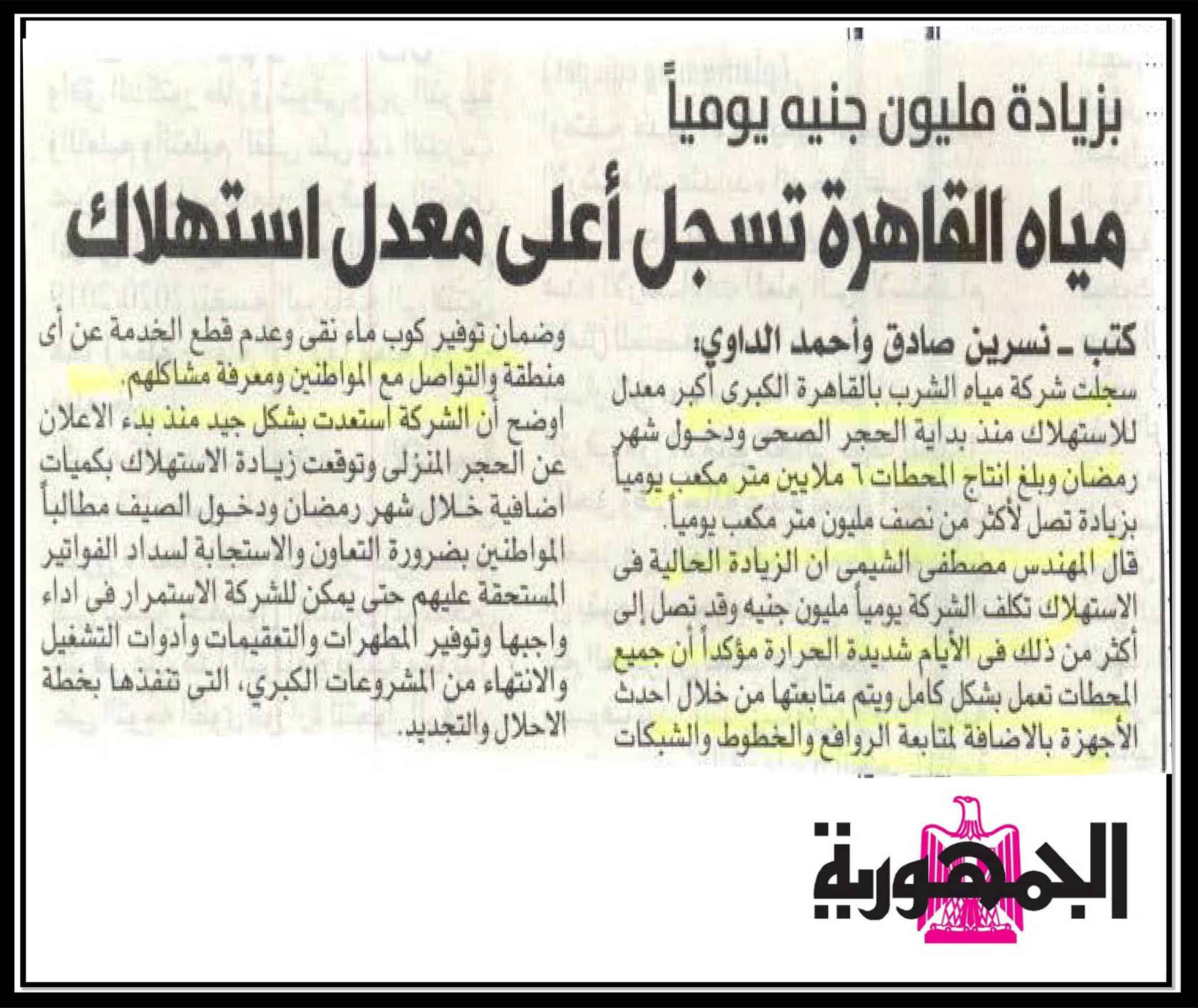 زيادة مليون جنية يوميا …مياه القاهرة تسجل أعلى معدل استهلاك .