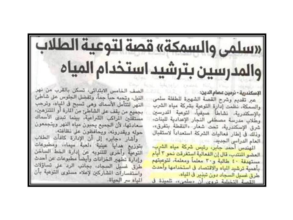 ” سلمى والسمكة “قصة لتوعية الطلاب والمدرسين بترشيد استخدام المياه