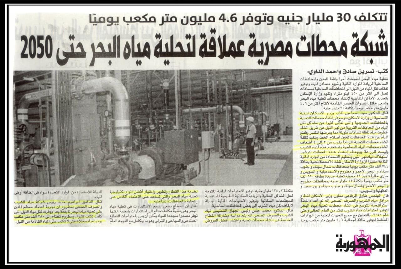 شبكة محطات مصرية عملاقة لتحلية مياه البحر حتى 2050 .