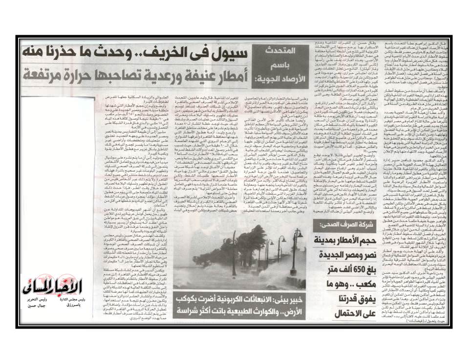 شركة الصرف الصحي :حجم الامطار بمدينة نصر ومصر الجديدة بلغ 650ألف متر مكعب.. وهو ما يفوق قدرتنا على الاحتمال