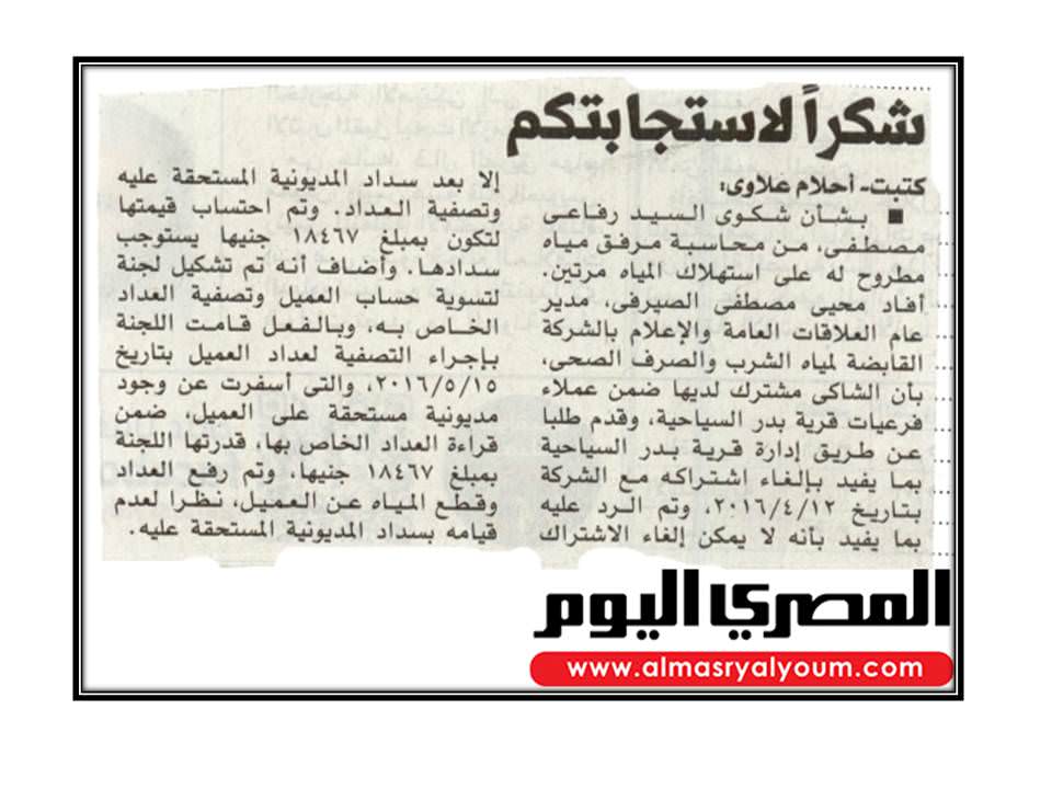 مياه الجيزة … قطع المياه لمدة ٦ ساعات عن بشتيل لعبة مساء الجمعة