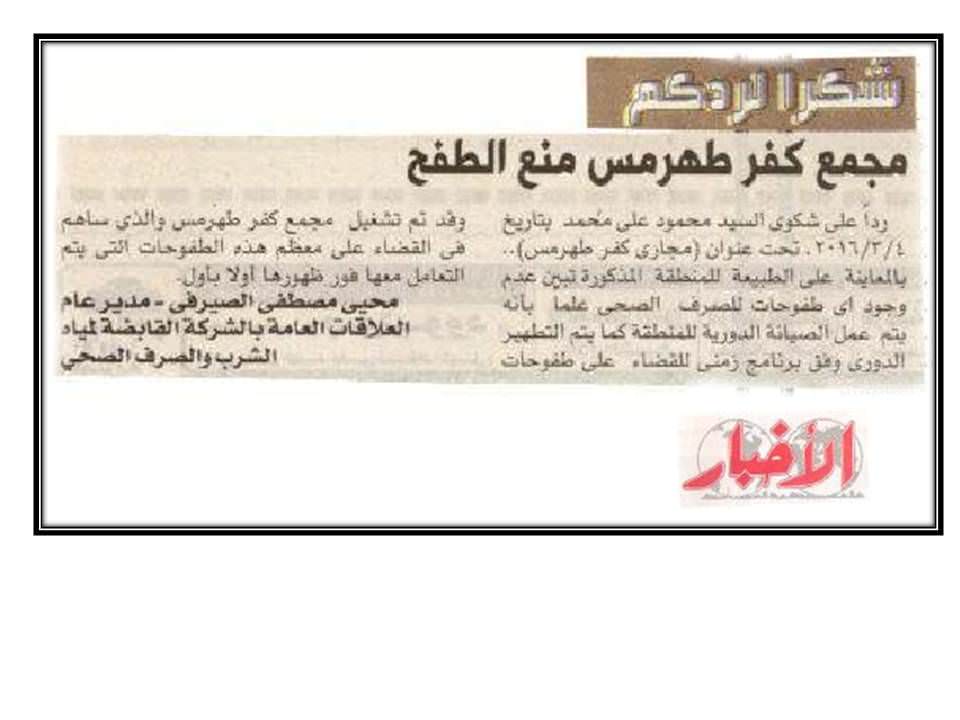 شكراً لردكم …مجمع كفر طهرمس منع الطفع …2016/4/29