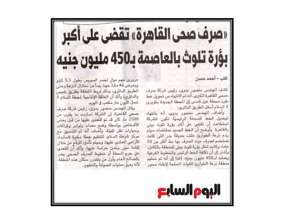 صرف صحي القاهرة تقضي على أكبر بؤرة تلوث بالعاصمة بــ 450 مليون جنية