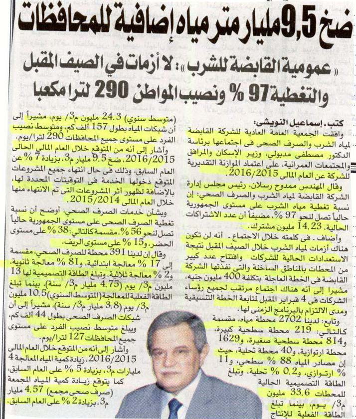 ضخ 9.5 مليار متر مياه إضافية للمحافظات