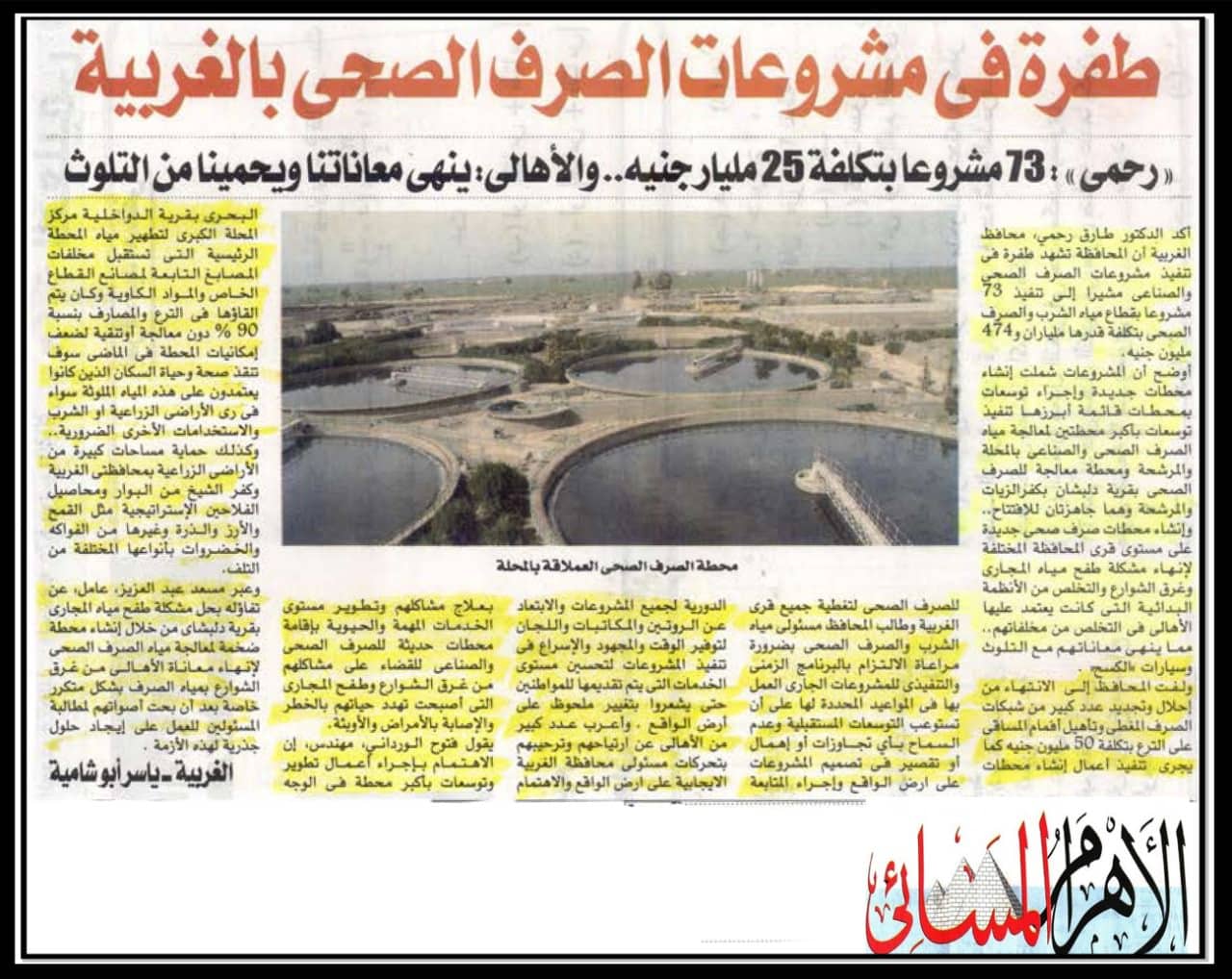 طفرة في مشروعات الصرف الصحي بالغربية .