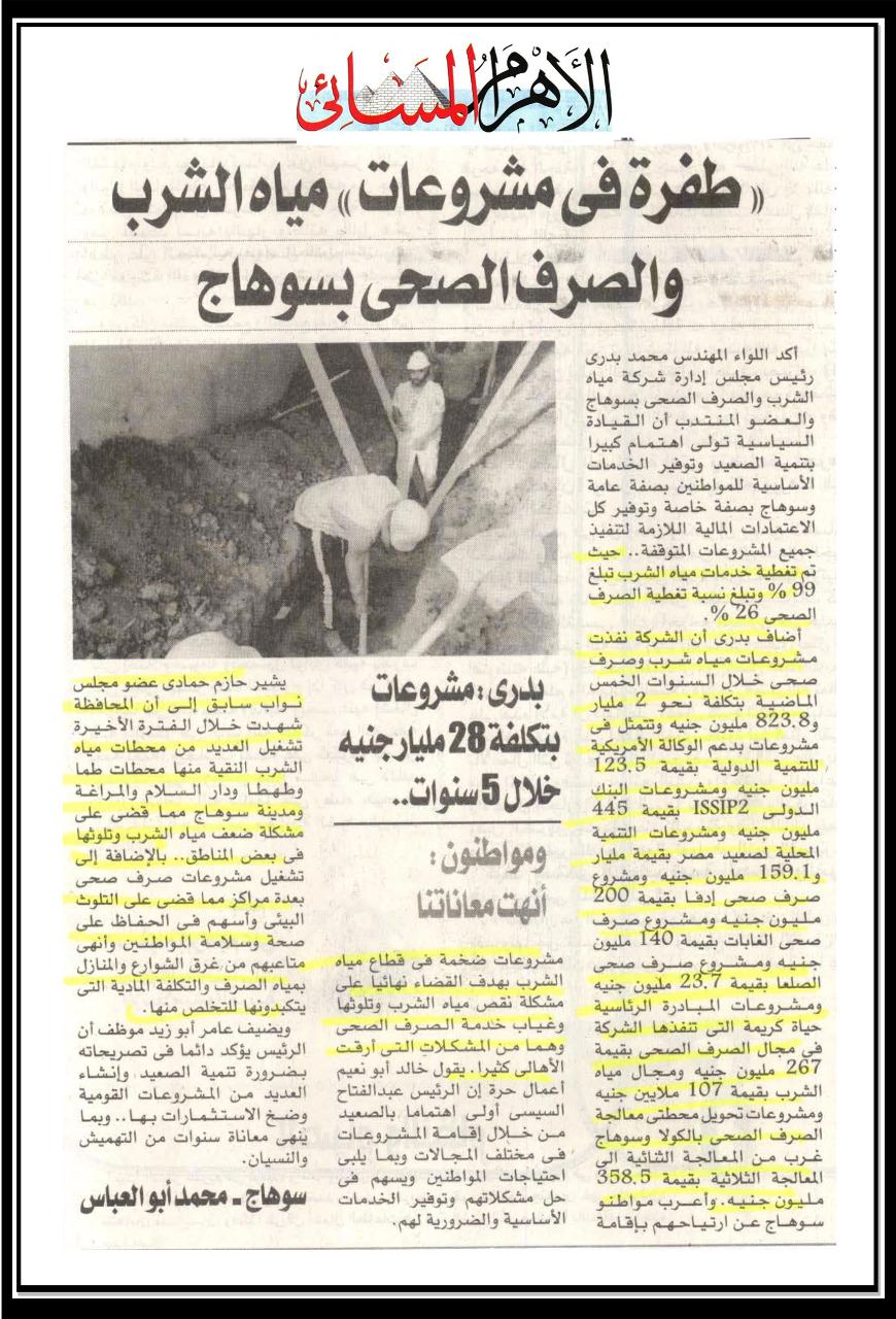 طفرة في مشروعات مياه الشرب والصرف الصحى بسوهاج